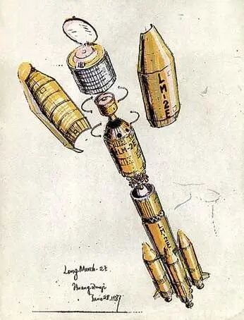 1986年3月的一天,黄作义拿着自己画的草图找到时任一院副院长王永志,提出了大胆的方案:将长二丙火箭的芯级加长,在它的第一级周围捆绑4个液体助推器,打造一款全新的火箭——这就是后来赫赫有名的长二E火箭(又称长二捆火箭)。“有人表示怀疑,但王永志说可行、能做到,我们就有信心了。”陈寿椿说。