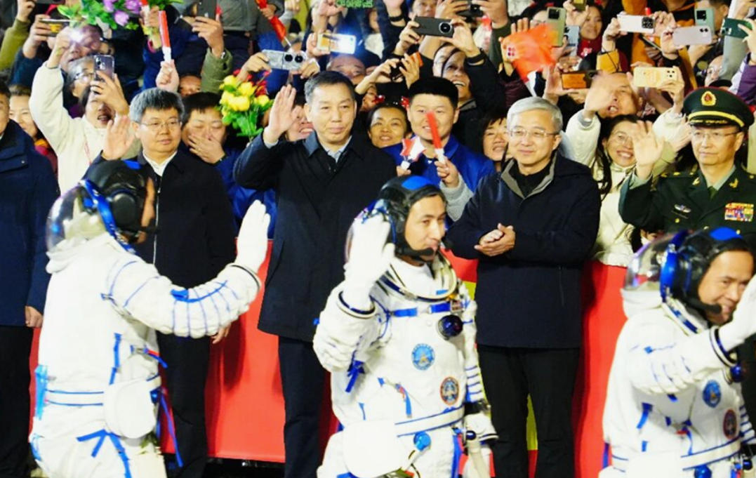 10月31日20时48分,神舟二十一号载人飞行任务航天员乘组出征仪式在酒泉卫星发射中心问天阁圆梦园广场举行。