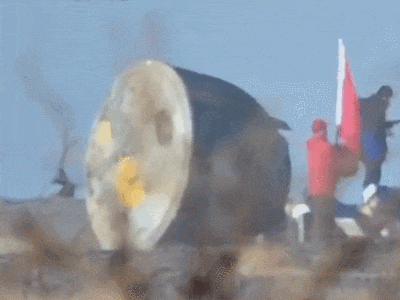 之后,飞船返回制动发动机点火,返回舱与推进舱分离,返回舱成功着陆,搜救分队及时发现目标并抵达着陆现场。